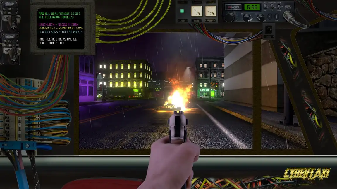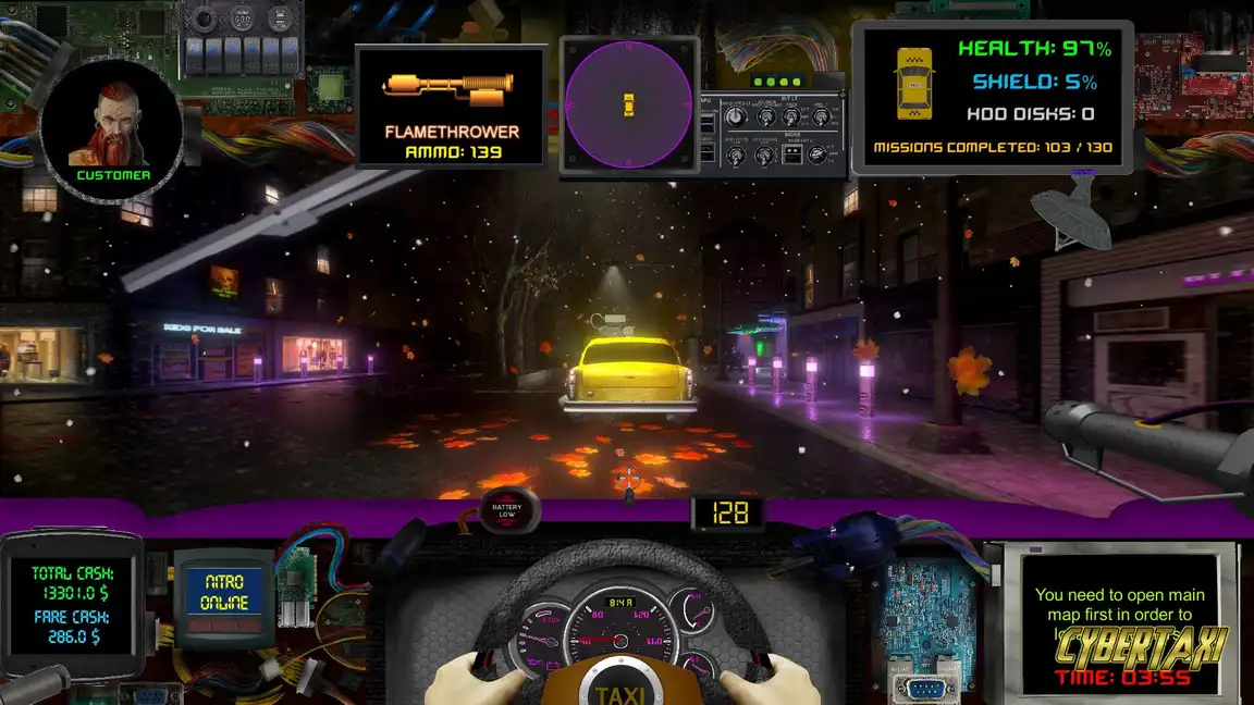 Неон жарығындағы Гинденбург көшелерінде кибертакси жүргізіп, түрлі фракциялармен тапсырмаларды орында! Әр жолаушы - құнды ақпарат көзі. Кибер әлемде аңызға айнал!